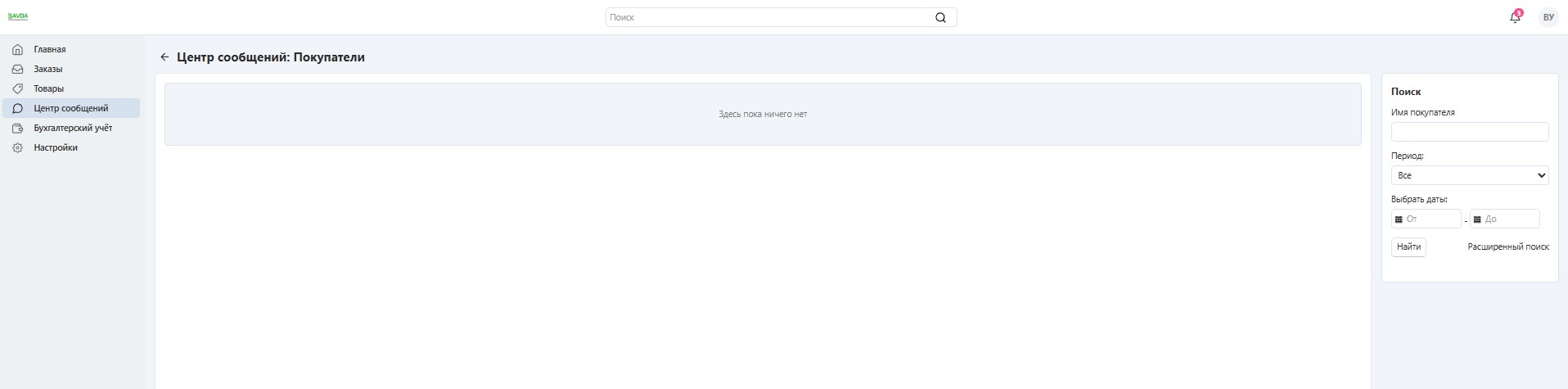Центр сообщений - в данном разделе расположен чат с покупателями.